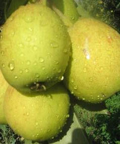 库尔勒香梨颜色青绿、微带红晕、皮薄汁多、无渣核小、肉质细脆、香甜可口,有润肺、消痰、保肝明目、降压滋阴之功效,是天然的绿色食品。香梨以库尔勒香梨产量大,质量好,其种植面积达2.4万亩,年产量在千吨以上。